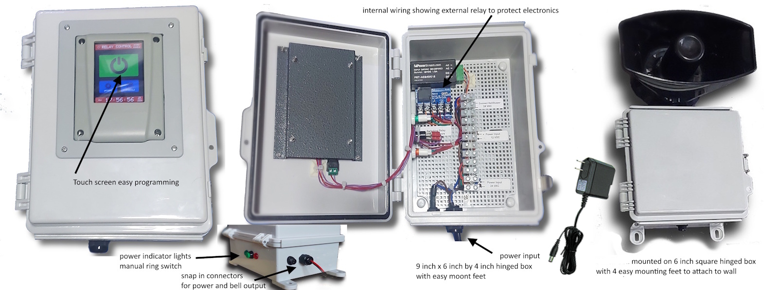 The AutoBell with Horn is your reliable companion in keeping track of time and ensuring smooth operations. With its user-friendly interface, you can easily set up customized timers for different purposes. Need a reminder for your lunch break? No problem. Want to signal the end of a work shift? Consider it done.